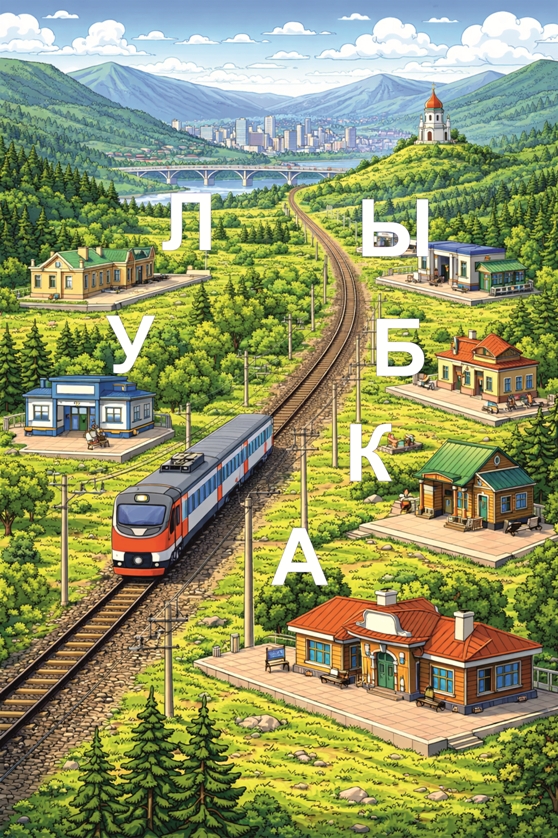 На каждую букву нужно назвать реальные станции или остановки по маршрутам курсирования пригородных поездов АО "Краспригород".